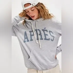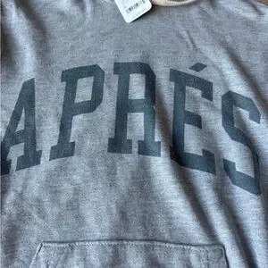 NWT Cozy gray hoodie with 'Après' print. Perfect for casual wear. Sold out print.