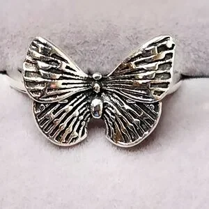 Dainty silver butterfly ring, perfect for adding a touch of nature-inspired beauty to any outfit. Size 7.5
