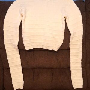 PLT Shape Cream Panelled Knit Crop Sweater Sz Medium