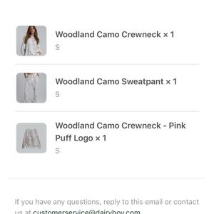 Dairy Boy Woodland Camo Crewneck with Pink Puff Logo in small. Quickly sold out. Potentially no restock on website. Just sitting in my closet, ready for its new home! ♥️