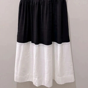 Ultra-chic black and white colorblocking makes the Dylan Dress a timeless, three-season stunner. A flattering V-neckline transitions into a flowy maxi skirt with a contrasting white hem with black stitching to add to the juxtaposition. Dress it up with heels for backyard get-togethers or keep it casual with sandals as you meander around town.