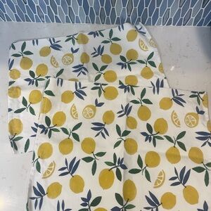 Brighten up your kitchen with this lemon-themed linen set. Featuring vibrant yellow lemons and green leaves, this set adds a fresh touch to your home. Perfect for everyday use or special occasions. Purchased in Venice, Italy. Machine Washable