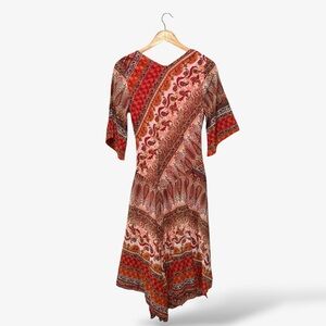 Westport 1962 Midi Dress Size 6 Red Brown Metallic Paisley Print V-Neck Casual