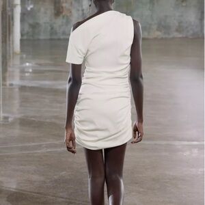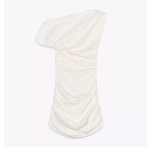 Zara NWT white mini dress asymmetrical draped off shoulder ruched dress