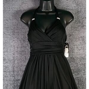/Unworn, tags attached, no flaws, gift quality. Perfect 'little black dress's for summer. Crystal accent on halter ties. Lined and comfy! I combine shipping on all orders. Thanks!