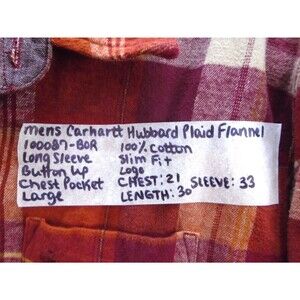 Carhartt Men’s Size Large Slim Fit Hubbard Flannel Shirt 100% Cotton 10087-B0R