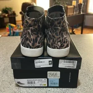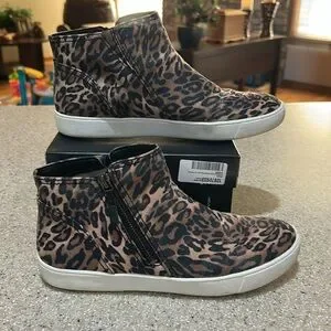 Worn once. I usually wear an 8M & loved these hoping I could make the bigger size work, but couldn’t. Leopard print sneakers with side zipper. Comfortable and stylish for everyday wear.