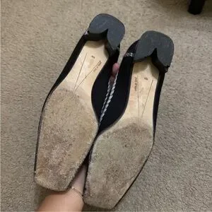 Good but worn condition. Size 10 womens. Step out in style with these chic black and white women's shoes. Perfect for any occasion, these shoes offer both comfort and elegance.