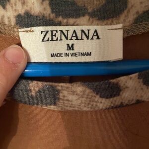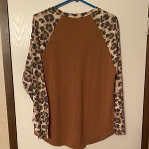 Zenana Outfitters Brown Top with Leopard Print Sleeves