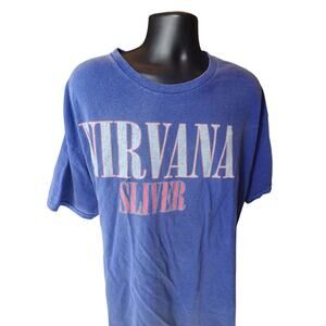 Nirvana Band T Shirt Mens 2XL Blue Sliver Graphic Tee Grunge Rock Concert Tour Distressed Grunge Rock Vintage Style