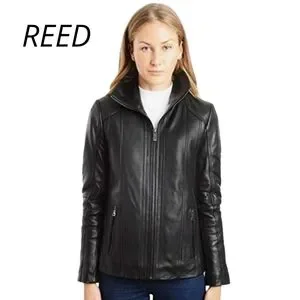Reed Lambskin Leather Women's Black Zip Up Jacket Size Medium