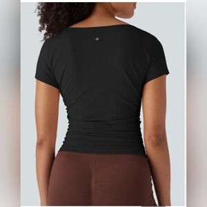 Halara Cowl Neck Short Sleeve Ruched Yoga Top In Black Sz. XL