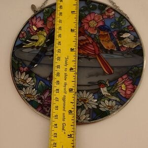 Brighten your home with this stunning art sun catcher featuring vibrant birds and flowers. Perfect for adding a touch of nature to any room.