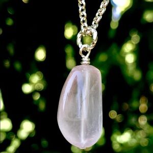 Authentic Rose Quartz Gemstone Necklace! Rose Quartz provides loving energy and should be applied to loving ourselves. Rose quartz brings a balance to your emotions and restores feelings of peace and tranquility. Stress and anxiety relief will follow this calm emotional balance. It also carries energies for tolerance and compassion. (Bundle 3 Listings & Save with my Discount!) shape size vary.