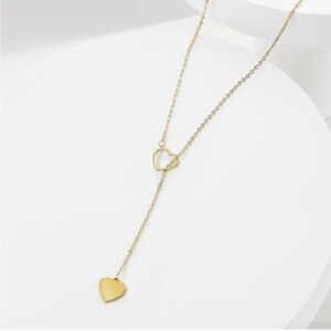 GOLD 14k Gold Plated Heart Lariat Necklace