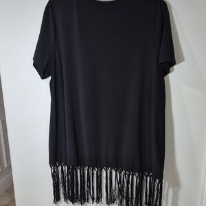 New Directions Black Short Sleeve Fringe Top Womens Plus 1X