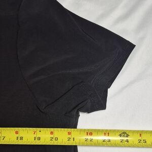 Stylish black top with fringe hem. Short sleeves. Perfect for casual wear.