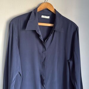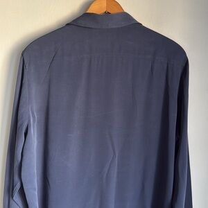 The Row Women's Navy Blue Silk Button Down Blouse top 14