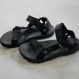 Right shoe has signs of wear on the back ankle straps. See pictures.