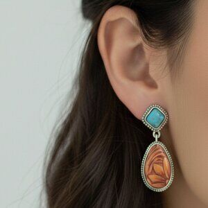 ✨ Stylish sunflower drop design with natural turquoise and resin accents — vintage-inspired and eye-catching