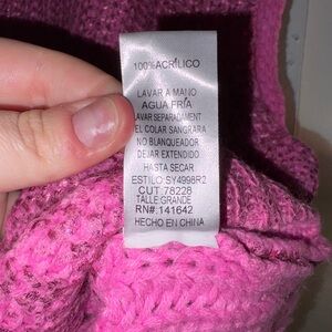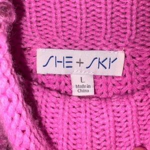 Elevate your wardrobe with this vibrant SHE + SKY Metallic Foil Sweater Vest Top in a striking magenta pink. Crafted from 100% acrylic, this sleeveless vest features a relaxed, slightly oversized fit and a shimmering metallic finish, making it perfect for layering or wearing solo.