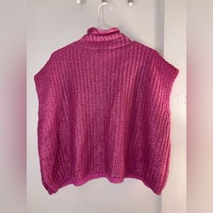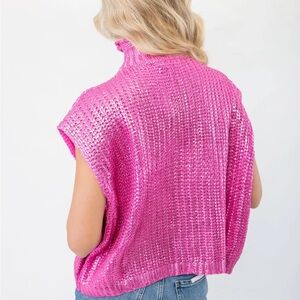 SHE + SKY Metallic Foil Shiny Sweater Vest Top in Magenta Hot Pink – Size Large