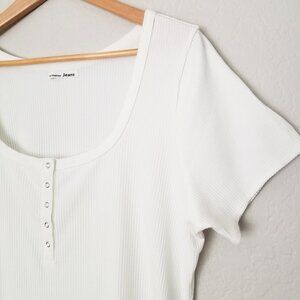 Reformation Rawson Ribbed Bodysuit White Plus Size 3X Short Sleeves Classic $78