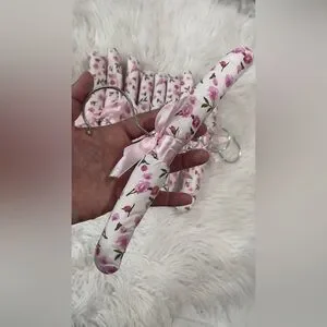 Charming hangers with a pink floral pattern. Ideal for delicate garments.Setof 9