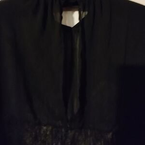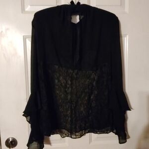 🐈⬛ Divine VS Vintage Victorian Inspired Black Sheer Crepe & Lace Blouse - L