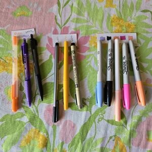 Alcohol markers, pens, pencils, crayons, and watercolors
