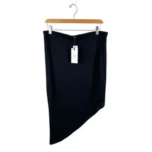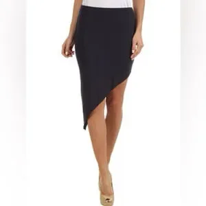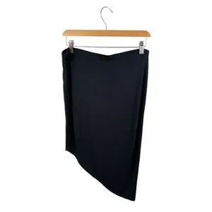 * NEW Halston Black Viscose Jersey Pull On Asymmetrical Skirt Size S