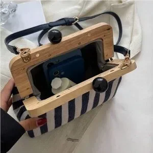 Chic and stylish, this striped navy and white handbag is perfect for any occasion. Its elegant design adds a touch of sophistication to your outfit.