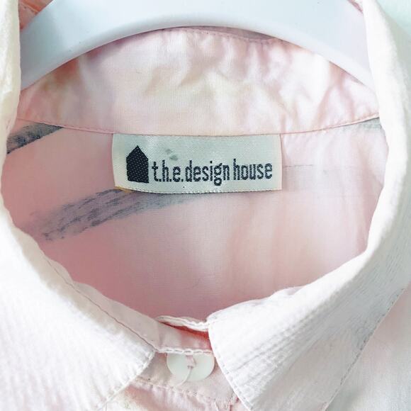 Vintage Design House Womens Size M/L Pink Abstract Art Long Sleeve Button Up