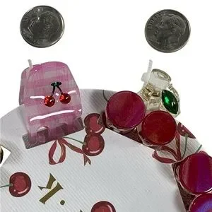 Adorable Piper K hair clips with cherry design. Cream, red and pink colors add charm to any hairstyle. Rhinestones in cherries and stems/leaves make these perfect for a pop of color with any wardrobe!