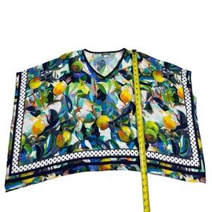 Simply Art By Dolcezza Poncho Style Blouse Womens Medium Lemon Print Colorful