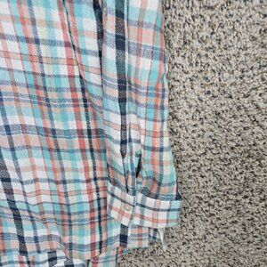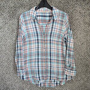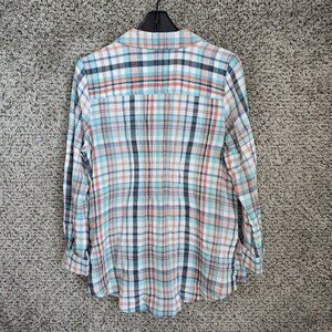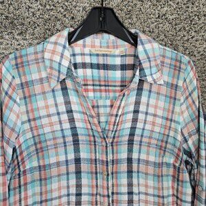 Soft Surroundings Top Womens PM Petite Medium Blue Plaid Button Up Collared