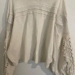 Free People Cream Lace Long Sleeve Top