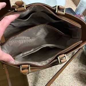 Michael Kors brown and tan Jessie Large Tote Satchel.