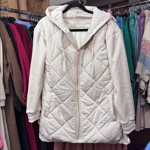 M14. NEW Mystree Women's Cream Quilted Puffer Jacket W/Pockets & Hood