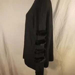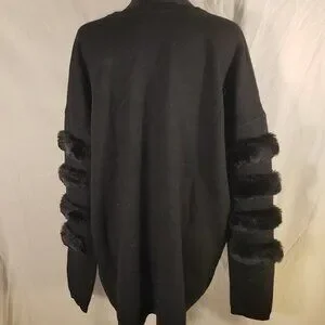 Staccato Black XL Sweater w/Faux Fur Trimmed Sleeves