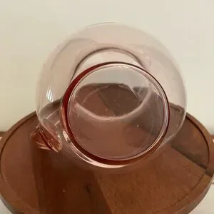 Charming pink glass pitcher. Perfect for serving beverages. Adds a touch of elegance to any table.