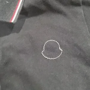 Used, little fading, but still has a lot of life. Front logo unattached. Chic dark blue polo with red trim. Features long sleeves and buttoned collar. Ideal for stylish outings.