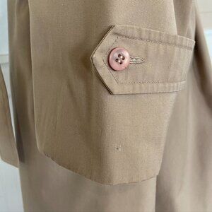 Vintage London Fog Trench Coat, Tan, Tie waisted. Zip out fur lining. Full length, 40" long from shoulder to hem. When buttoned, 23 " from underarm to underarm. Perfect classic coat for all seasons, water resistant. Preowned in excellent condition, free of holes, tears or stains. Fur lining in excellent condition.