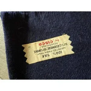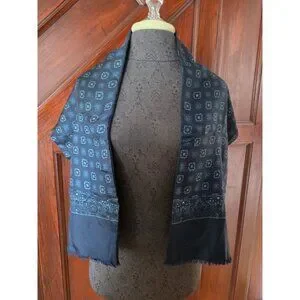 This vintage reversible scarf by Cisco is crafted from luxurious silk and cashmere wool. Its elegant blue pattern adds sophistication to any ensemble.