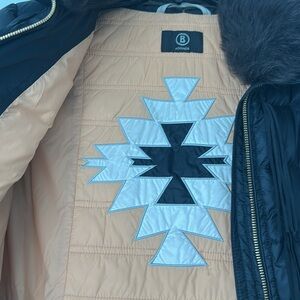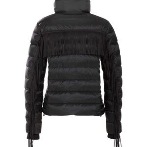Bogner black ski jacket with lamb fur removable collar and suede fringe XS $2200