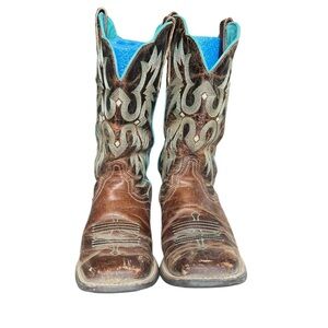 Ariat 6.5B Brown Turquoise Western Square Toe Cowboy Boots Cowgirl