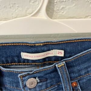 DETAILS: Levi's jeans women's 25, ribcage straight ankle jeans, button fly. Cotton blend, machine wash. $98 retail.