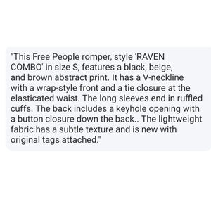 Step into effortless elegance with the NWT Free People All The Right Ruffles Romper. This stunning black romper, size small, is designed to flatter your figure while offering unparalleled comfort. The playful ruffles add a touch of whimsy, making it perfect for day-to-night transitions. Whether you're heading to brunch or a night out, this versatile piece ensures you’ll always look chic and put-together. Crafted from high-quality fabric, it drapes beautifully, allowing for easy movement. Pair it with your favorite heels or sandals for an effortlessly stylish ensemble. Don’t miss out on this wardrobe essential that combines fashion with functionality. Grab yours today and elevate your style game!