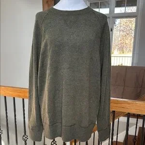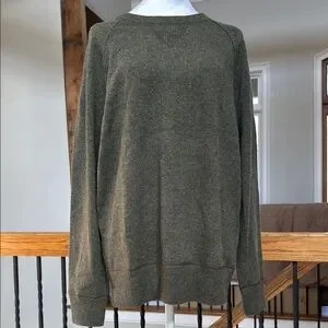 NWT CASHMERE crewneck luxury sweater olive green AE77