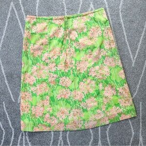 RARE Vintage 1970’s Lilly Pulitzer Peach and Green Floral Midi Skirt